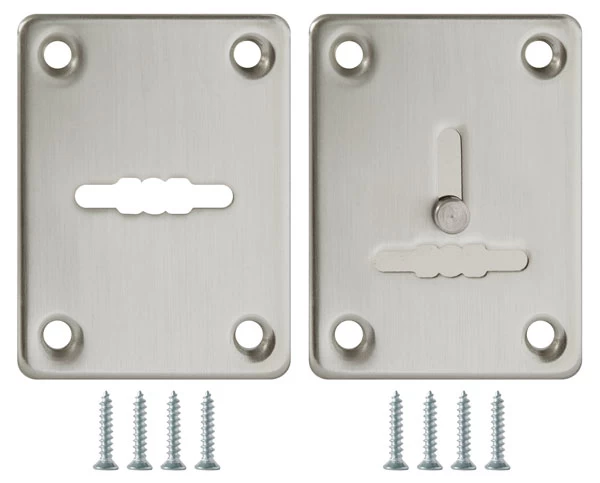 Комплект декоративных накладок Fuaro ESC081/082 под сувальдный ключ. Комплект состоит из накладки без шторки и накладки со шторкой. Накладки предназначены для установки на сувальдные замки для декорирования замочной скважины. Материал изготовления: сталь. Тип крепления накладок: сквозной. Цвет: матовый никель. Саморезы в цвет накладок.