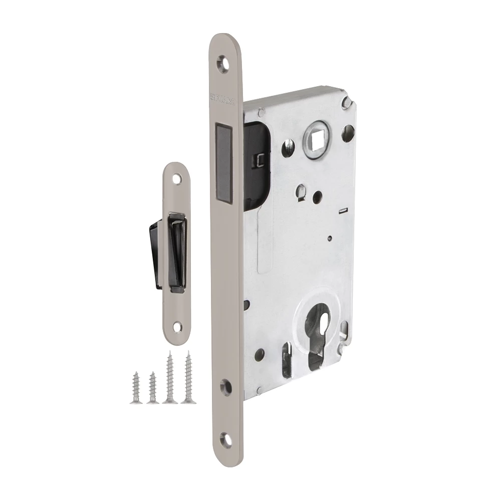 Бесшумный магнитный корпус замка Fuaro 5300-M-C изготовлен в соответствии с требованиями ГОСТ 5089-2011. Предназначен для установки в деревянные межкомнатные и сантехнические двери с комплектованием цилиндром, подходит для дверей левого и правого открывания. Корпус выполнен из стали с надежным гальваническим покрытием. Магнитный механизм обеспечивает бесшумность работы замка. Защелка 5300-M-C c усиленным блоком пружин имеет высший 4 класс надежности (250 000 циклов открывания/закрывания). Отверстия под стяжные винты находятся на расстоянии 38 мм. Возможна установка дверных ручек на стяжные винты для более прочного крепления. В комплектацию входят: ответная планка с магнитной вставкой и крепежная фурнитура в цвет изделия.
