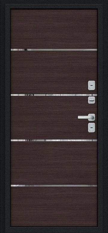 Надежная входная Дверь Браво Thermo Лайн/BChrome Букле черное/Wenge Melinga премиум класса по цене 46 935 руб. Большая толщина стали защитит от проникновения в ваш дом, квартиру или коттедж. Используется очень качественная фурнитура: замки, цилиндры, ручки, защелки. Покрытие и отделка двери изготовлено под внимательным контролем производителя. Дверь имеет долгий срок службы и гарантию.