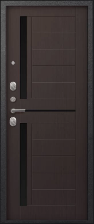 Надежная входная Дверь A-01 черный сатин - лиственница тёмная премиум класса по цене 30 885 руб. Большая толщина стали защитит от проникновения в ваш дом, квартиру или коттедж. Используется очень качественная фурнитура: замки, цилиндры, ручки, защелки. Покрытие и отделка двери изготовлено под внимательным контролем производителя. Дверь имеет долгий срок службы и гарантию.