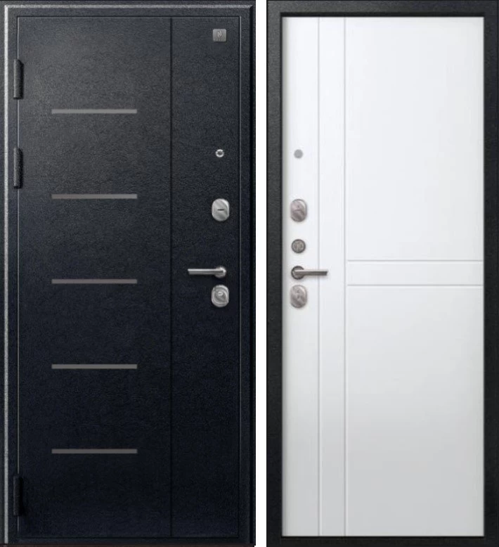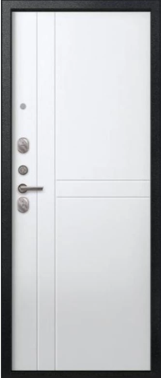 Надежная входная Дверь V-06 Черный муар - Белый премиум класса по цене 38 585 руб. Большая толщина стали защитит от проникновения в ваш дом, квартиру или коттедж. Используется очень качественная фурнитура: замки, цилиндры, ручки, защелки. Покрытие и отделка двери изготовлено под внимательным контролем производителя. Дверь имеет долгий срок службы и гарантию.